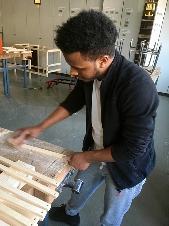 Der Bau der Garküche konnte in der Holzwerkstatt vom Projekt angekommen/adam’s corner in Dortmund durchgeführt werden. Unter der Leitung der Schreinerin Sarah Haas arbeitete das Team über eine Woche an der Fertigstellung der mobilen Küche. Die Stimmung war gut und motiviert, immer wieder stießen weitere Ensemble Mitglieder dazu um mitzuwirken. Zur gleichen Zeit wurde im Kiosk selbst der Eingangbereich gestrichen und das Lichtkonzept umgesetzt. Es dauerte über einen Monat bis der Raum fertig wurde, weil die Arbeiten immer wieder für Veranstaltungen und Proben freigemacht werden musste!